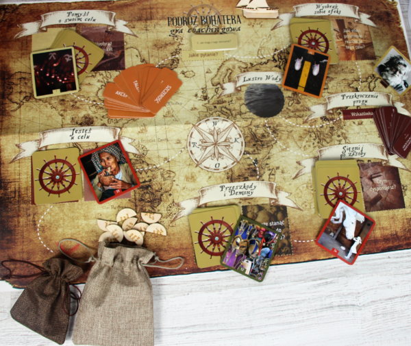 „Podróż Bohatera” to doświadczeniowa gra rozwojowa, w której uczestnicy zostają zaproszeni do symbolicznej podróży przez proces zmiany. Gra opiera się na uniwersalnym motywie monomitu – drogi, jaką przechodzi bohater mierzący się z wyzwaniami, odkrywający swoje zasoby i wracający z nową perspektywą oraz gotowością do działania.
