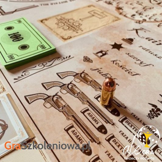 - Rewolwerowiec – mini-gra rywalizacyjna; praca z licytacją i targowaniem; „czytanie” intencji przeciwnika; element hazardu i ryzyka w biznesie; zarządzanie emocjami pod presją